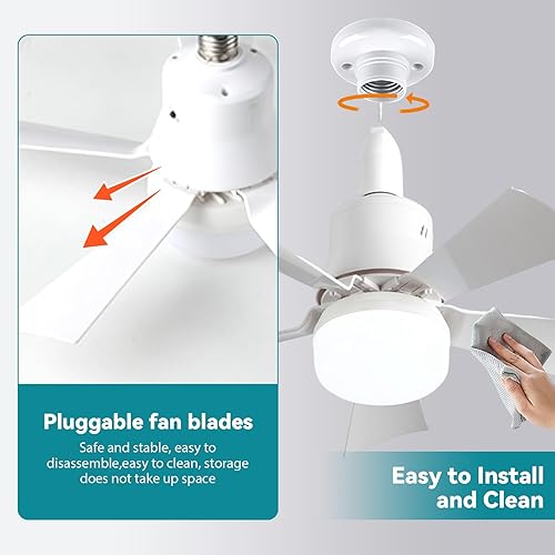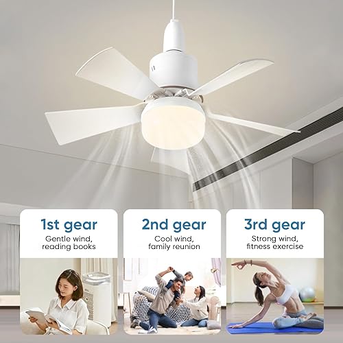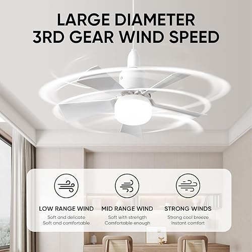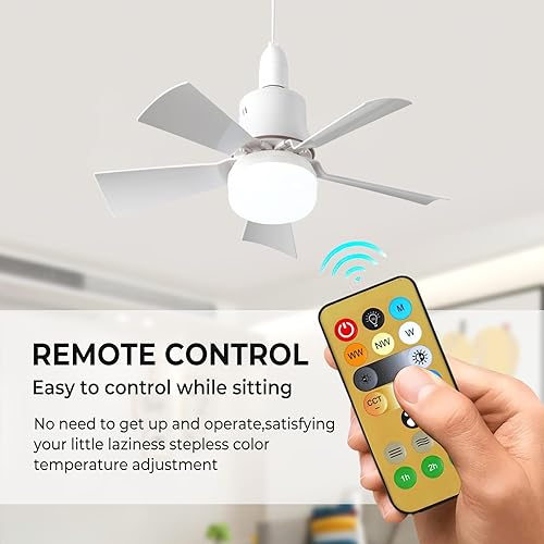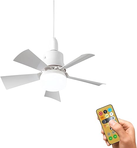 Eznaobo Ventilateur plafond avec lumiere, 30W Lampe Ventilateur Plafond avec 3 Vitesses et Temporisable, E27 Dimmable Ventilateur Plafond LED pour Chambre, Salon (white)