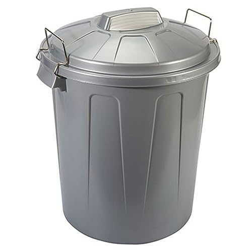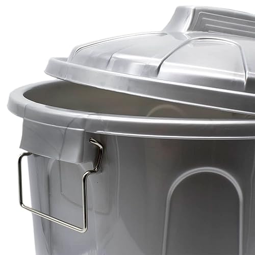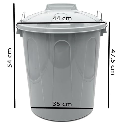 Acan Tradineur Poubelle avec couvercle et poignées métalliques, plastique, poubelle de recyclage, industrielle, fabriquée en Espagne (gris, 51 litres)