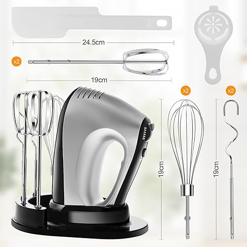 NWOUIIAY Batteur Electrique 500W à 5 Vitesses et 9 Accessoires Batteur à Main avec Fonction du Turbo Boost Bouton d'éjection et Base de Stockage pour Gâteaux Confitures et Crème etc