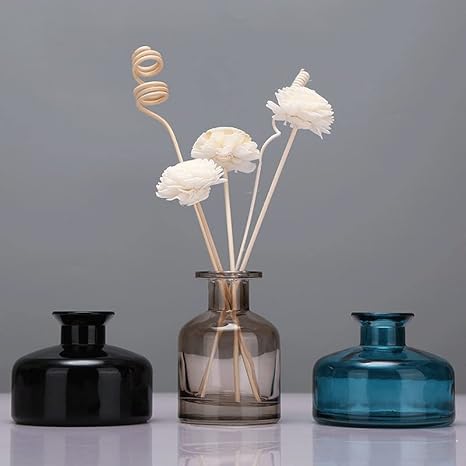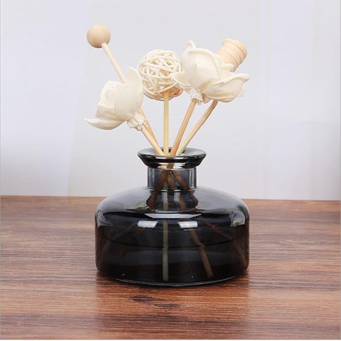 QUUPY Flacon diffuseur rond en verre rechargeable pour aromathérapie, parfum, parfum, accessoires de rechange pour loisirs créatifs, décoration de 200 ml