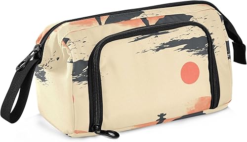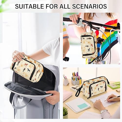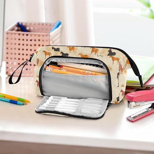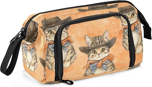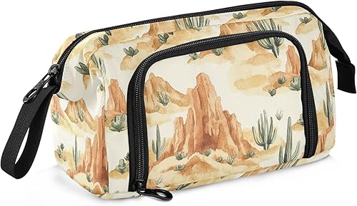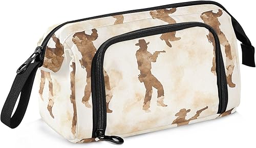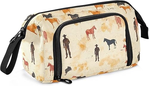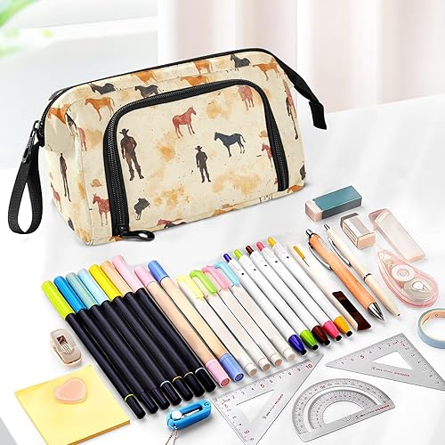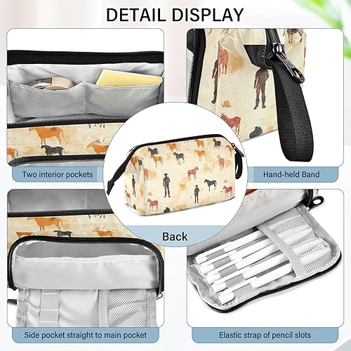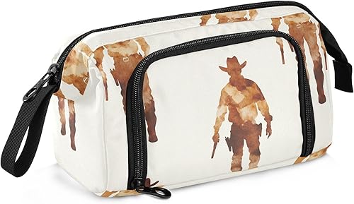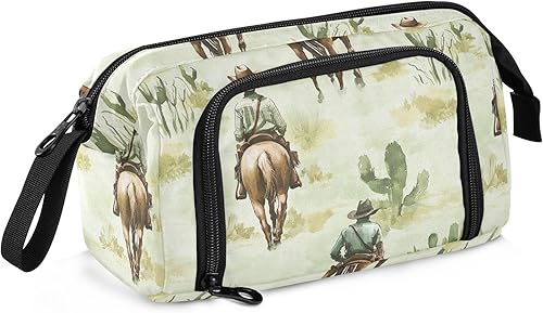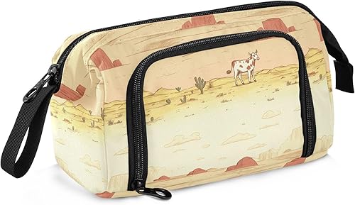 Grande trousse à crayons de voyage avec poignée, motif vache du désert de cowboy occidental, pour adolescents et adolescents