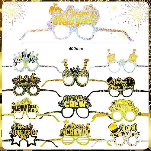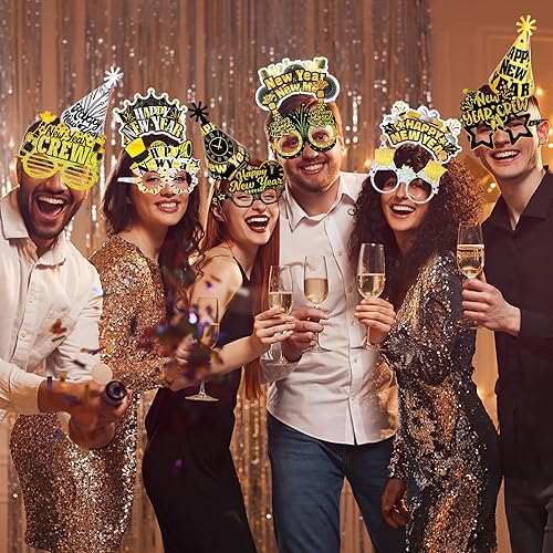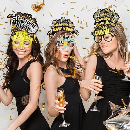 HOWAF Decoration Nouvel An 2025, Chapeau Nouvel An 2025, Serre Tete Nouvel An 2025, Lunettes Nouvel An 2025, Souffleurs de Fête pour Cotillons Nouvel an 2025 Deco Nouvel an 2025 Bonne Année, Or Noir