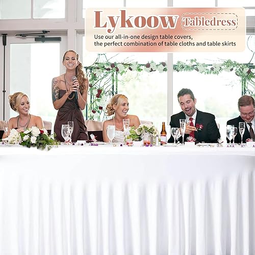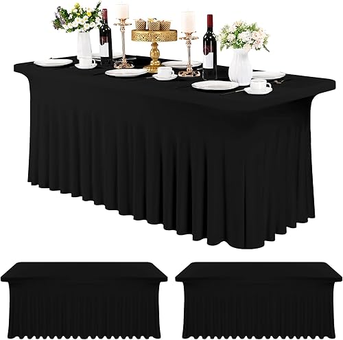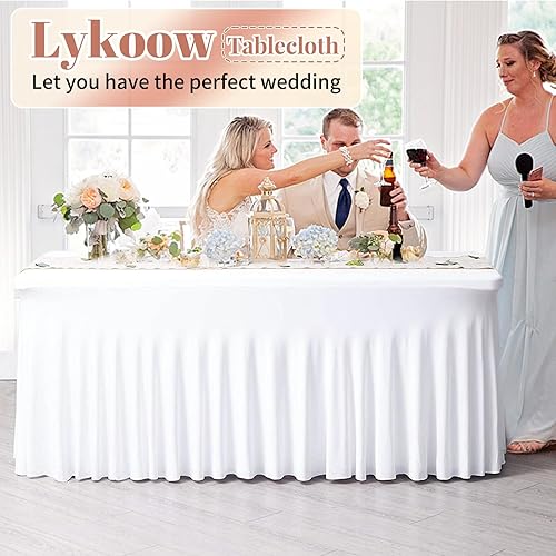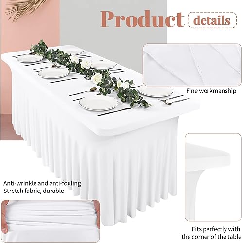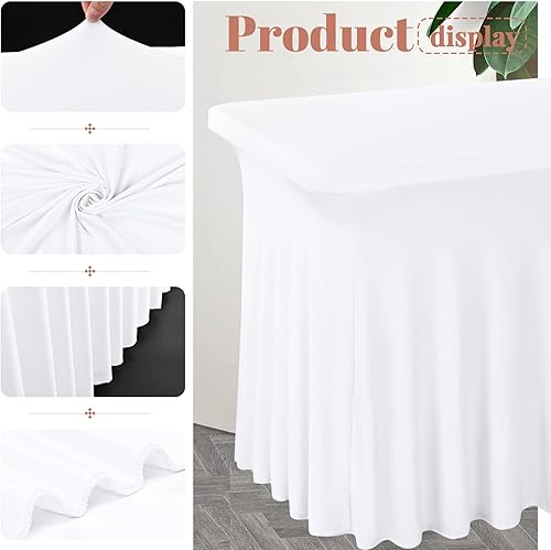 Teruntrue Lot de 3 Jupes de Table en élasthanne pour Tables rectangulaires Blanc 1,8 m Nappe Extensible ajustée Nappe résistante aux Plis avec Jupe, Jupe de Table en élasthanne pour Salon de banquets