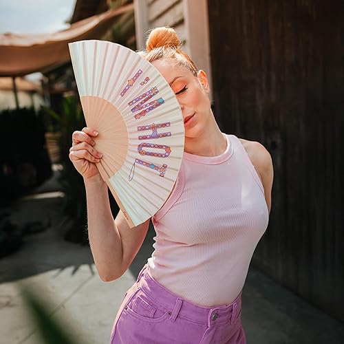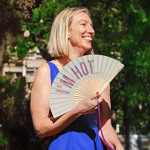 Fisura – Éventail en Bois Original avec Message “I’m Hot”. Accessoire Moderne et coloré, Ventilateur de Poche Beige avec Attache Incluse. Dimensions : 42,5 x 23 cm