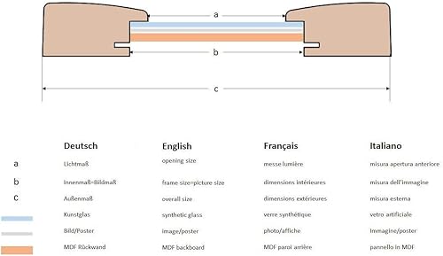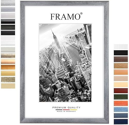 FRAMO35 24x36 Cadre Photo (Gris Flou), Cadre en Bois MDF de 35 mm de Large avec vitre en Verre synthétique incassable et Anti-reflet et paroi arrière Stable