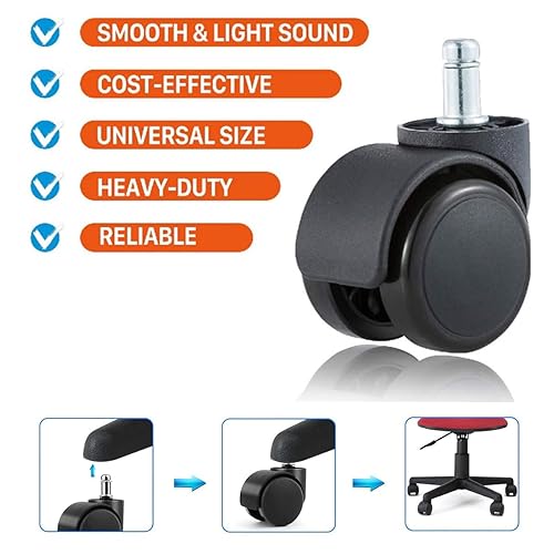 Roulettes Chaise de Bureau,Roulette Chaise Bureau,11x22 mm,Roulette pour Chaise de Bureau,Convient pour Parquets,Moquettes et Sols Durs (Noir)