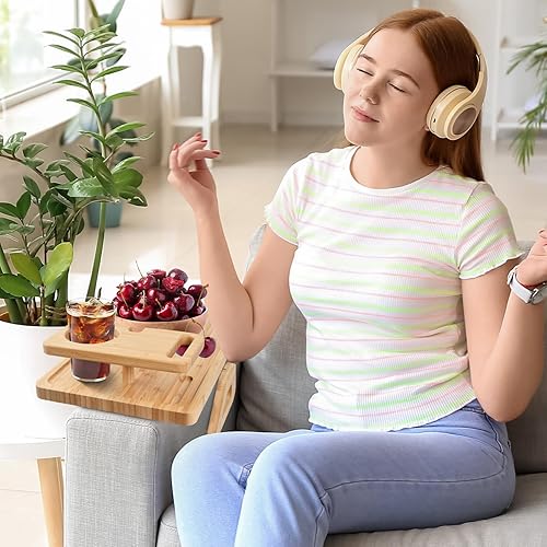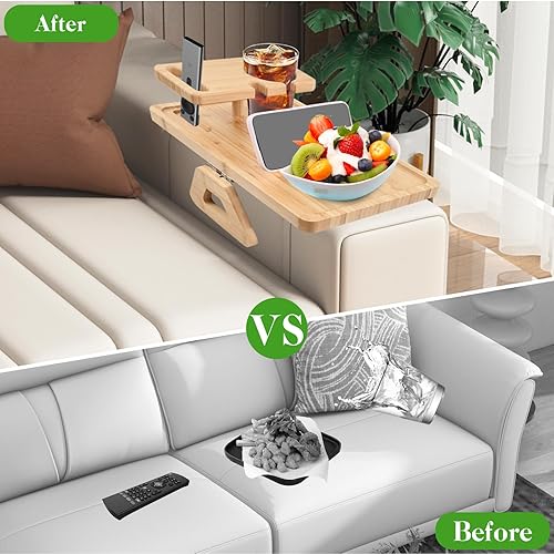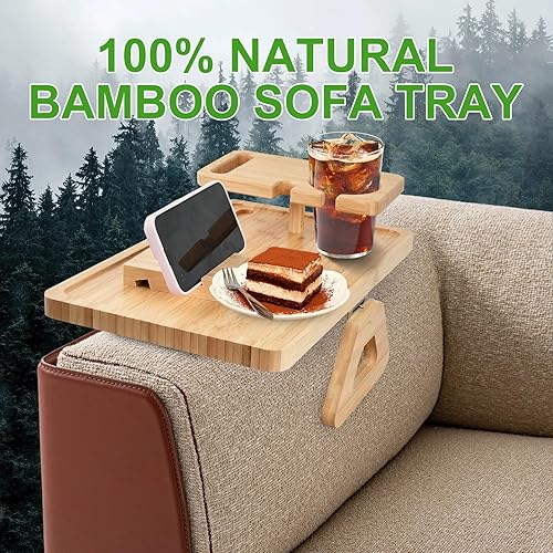 Mapille Plateau Accoudoir Canapé en Bambou Grande Capacité Plateau de Canapé à Clipser Pliable Table Bras de Canapé avec Porte téléphone et Tasse pour Snacks Téléphone Contrôle