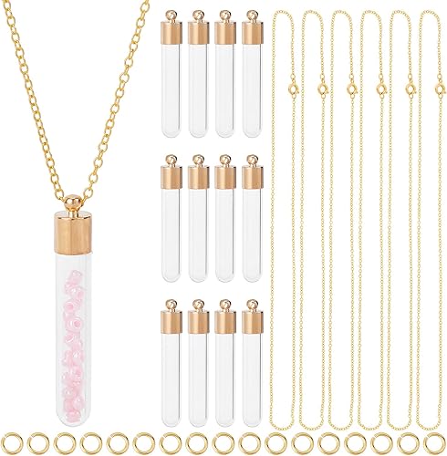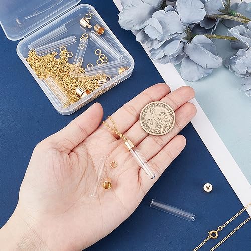 SUNNYCLUE 1boîte 64pcs 12 ensembles Bouteille en Verre Collier Faisant Kit Bouteille en Verre Charme Bouchons à Vis Bouteilles Vide Sablier Clair Flacon Charme pour la Fabrication de Bijoux Colliers à