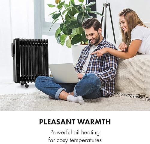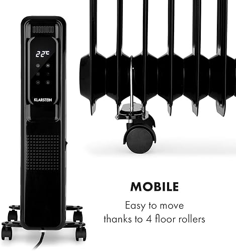 Klarstein Thermaxx Elevate Smart Radiateur à huile électrique 2720 W Puissance jusqu'à 54 m² Plage de température 7-35 °C Minuterie 24 h pour fonction on/off, affichage numérique, écran tactile, noir