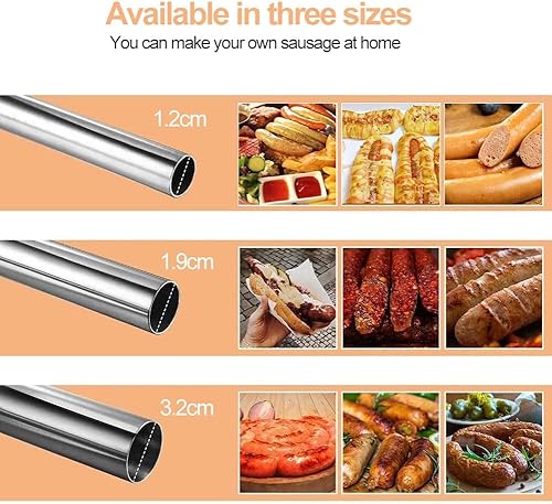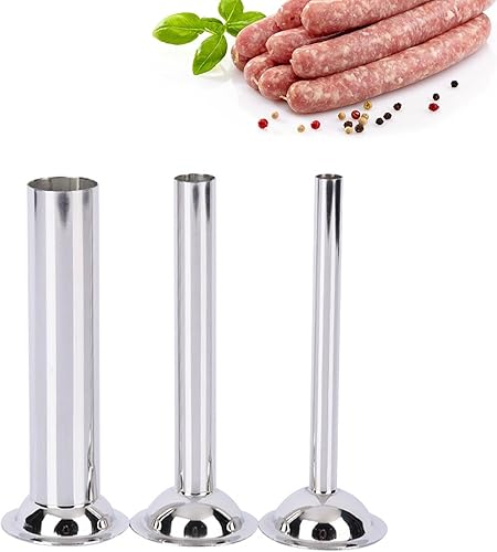 3PCS Tube de Saucisse, Tube de remplissage de saucisses pour hachoir à viande, Entonnoir Saucisse en Acier Inoxydable, 12/19/32 mm, pour hachoir à viande manuel ou électrique