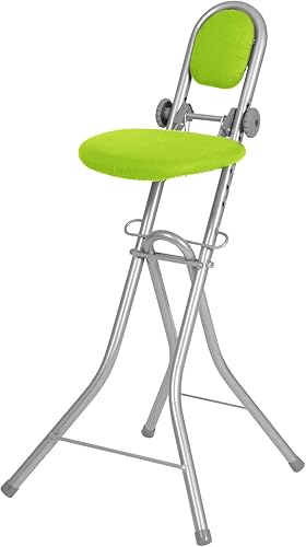 Ribelli® Chaise Assise-Debout Pliable avec Siège de Support Idéal pour Repassage, Cuisine, Chaise Multi-Usage env. 48 x 47 x 90,5 cm, Argenté/Vert