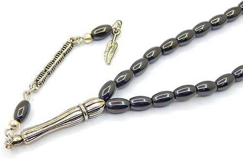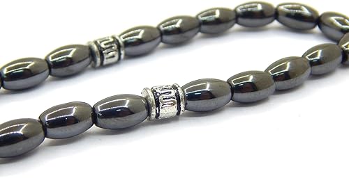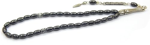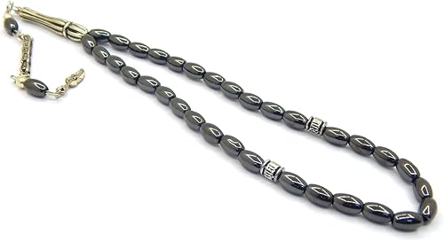 Tesbih Tasbih Tespih Misbaha Subha 33 Mini chapelet islamique en hématite ovales 8 mm Noir