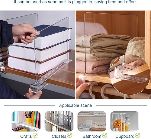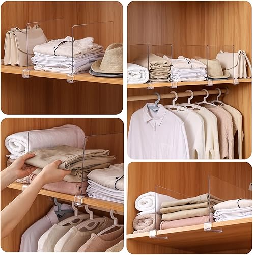 JEEZAO Séparateur d'étagères Armoire,Cloison Acrylique Transparente,sans Perçage,pour Stockage et L'organisation (style2)