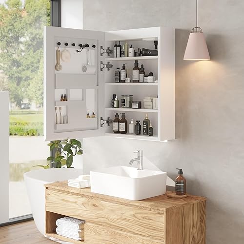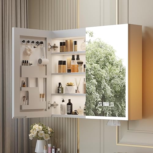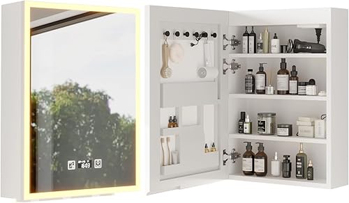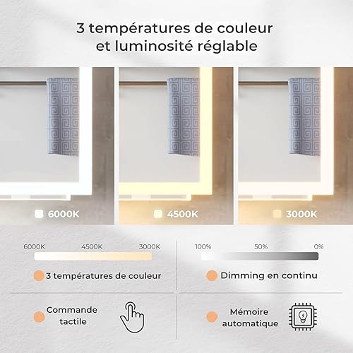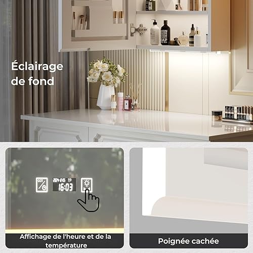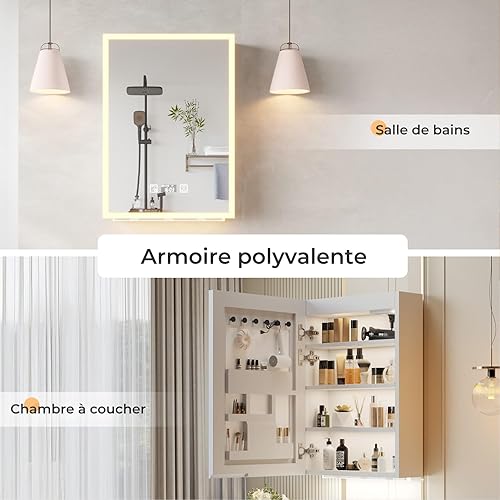 LEADZM Armoire de Salle de Bain avec Miroir et LED éclairage Armoire de Toilette Miroir avec Prise et 2USB Étagère Réglable,Température de Couleur Réglable Temps Température (80x70cm)