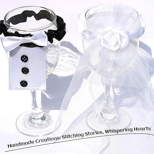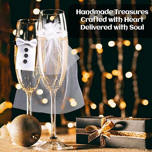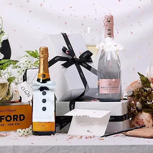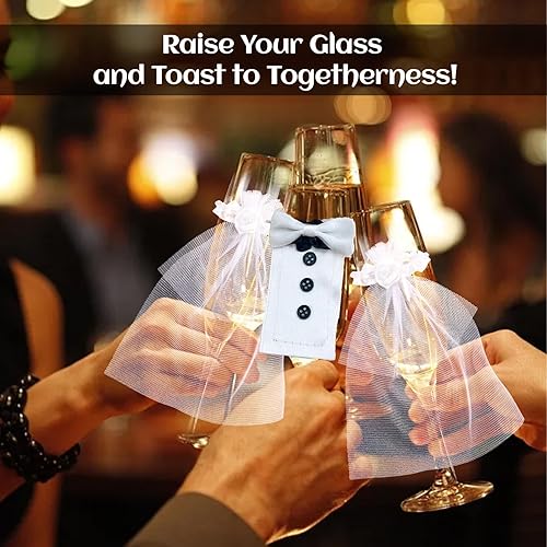 LUMOOM Lot de 4 flûtes à champagne pour mariage avec mariée et marié, décoration de bouteilles de vin, costume de mariage, décoration de table