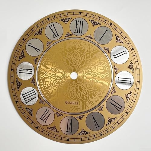Cadran de 17,8 cm en aluminium doré - Horloge murale vintage - Sans tic-tac - Silencieuse - Fonctionnement à piles - Rétro - Rond - Chiffres romains