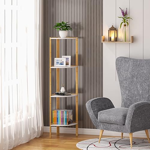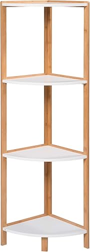 WOLTU Etagère d'angle étagère de Rangement pour Salle de Bain en Bambou et MDF Etagère de Cuisine à 4 Niveaux, 30x30x115cm RGB9357ws2