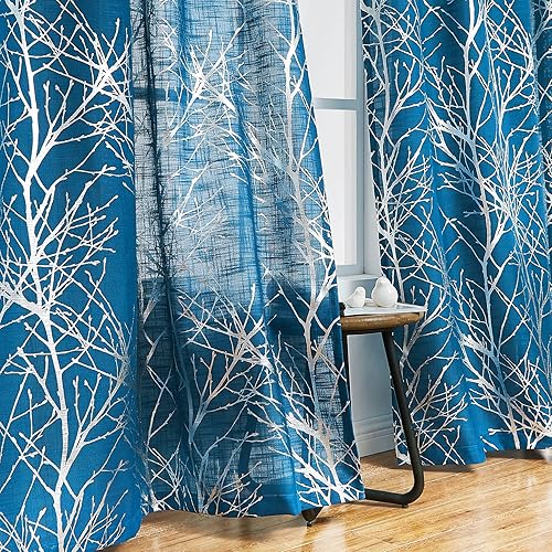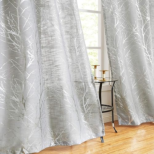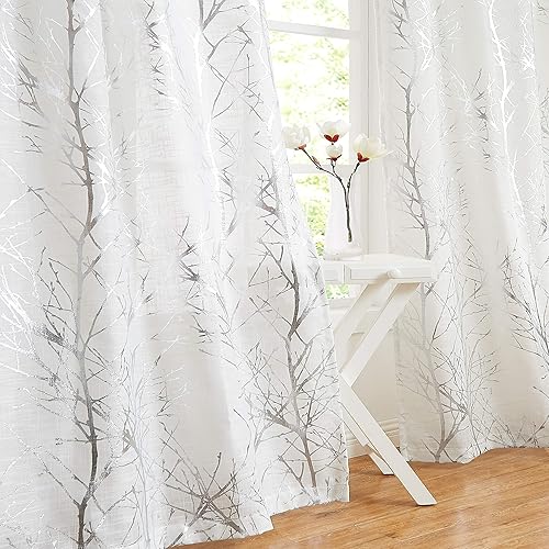Lot de 2 voilages métallisés à motif de branches d'arbre pour chambre à coucher, rideaux blancs et dorés, 183 cm de hauteur, rideaux semi-transparents pour fenêtre de salon, 127 cm de large