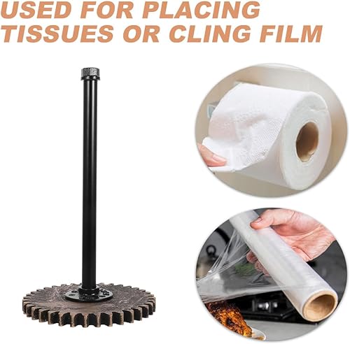 HOMSFOU Porte-Rouleau Essuie-Tout Métal Noir Style Industriel pour Cuisine Et Salle De Bain Support Multifonctionnel avec Design Vintage pour Restauration Et Usage Domestique