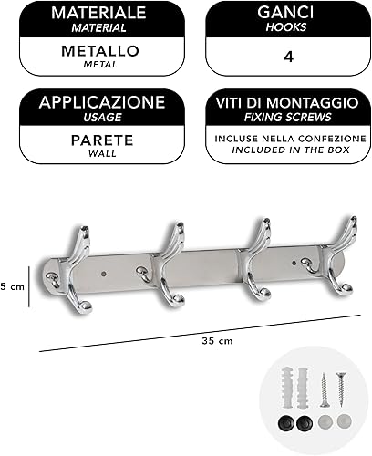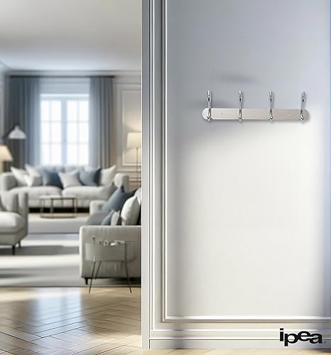 IPEA Cintre mural en métal avec 4 crochets – Design élégant – Cintres de vêtements muraux pour maison, chambre, cuisine, salon, magasin – Cintre pour vestes, manteaux, chapeaux – Métallique