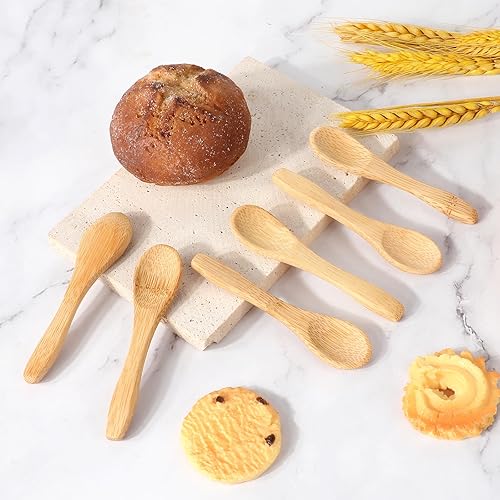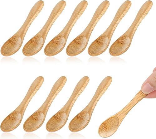 Lot de 10 petites cuillères en bois faites à la main - 9 cm - Petites cuillères en bois naturelles - Couverts en bois pour accessoires de cuisine, glaces, sauces, miel, thé