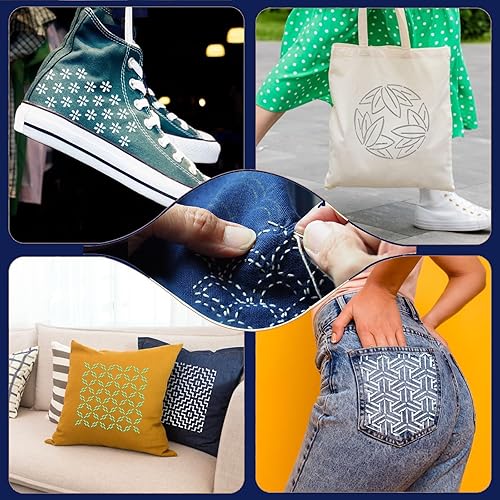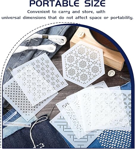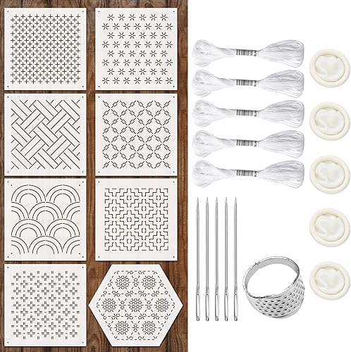 Zernblend 8 modèles de Broderie 4,7 x 4,7 Pouces, 5 Aiguilles à Broder, 5 Ensembles de Cordes tressées, 5 protège-Doigts en Caoutchouc et 1 Anneau pour Le Doigt, Quilting à la Main, pochoirs en