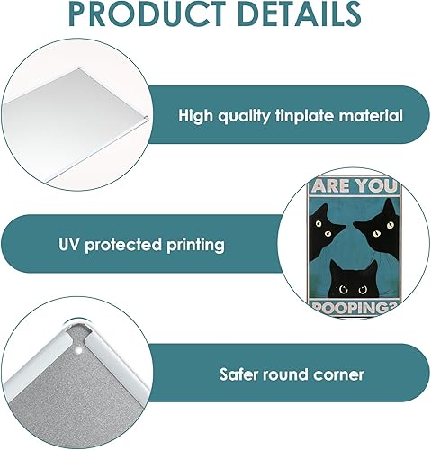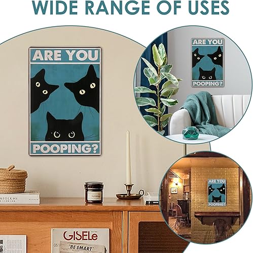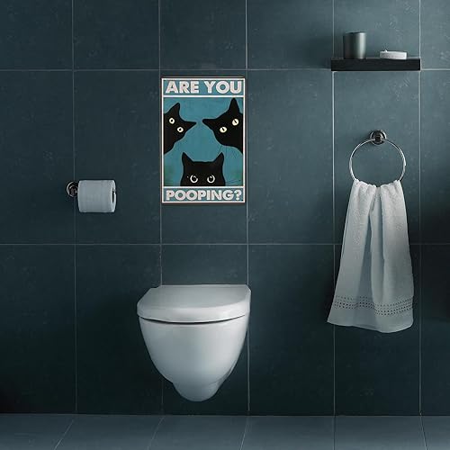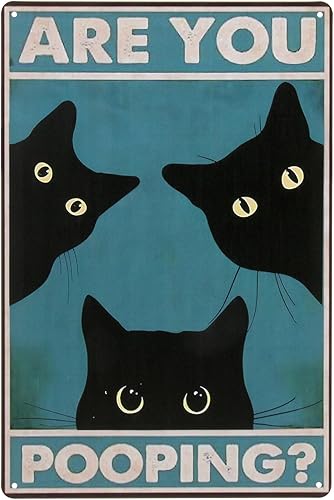 Panneau humoristique en métal avec chat noir « Are You Pooping » - Décoration murale vintage pour salle de bain - 20,3 x 30,5 cm - Pour les amateurs de chats et les toilettes