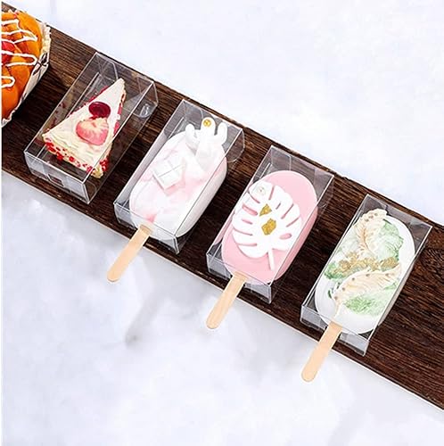 OUKEYI Lot de 25 boîtes transparentes en PET pour glaces à glace, 9,4 x 5,6 x 3,8 cm, pour mariages, fêtes d'anniversaire (25 + 50 pièces)