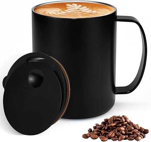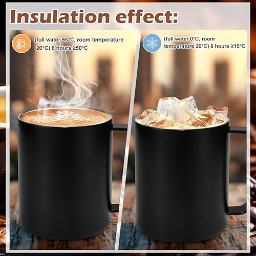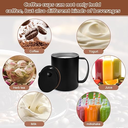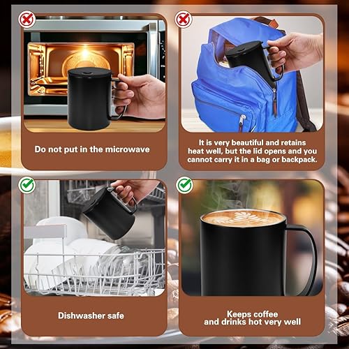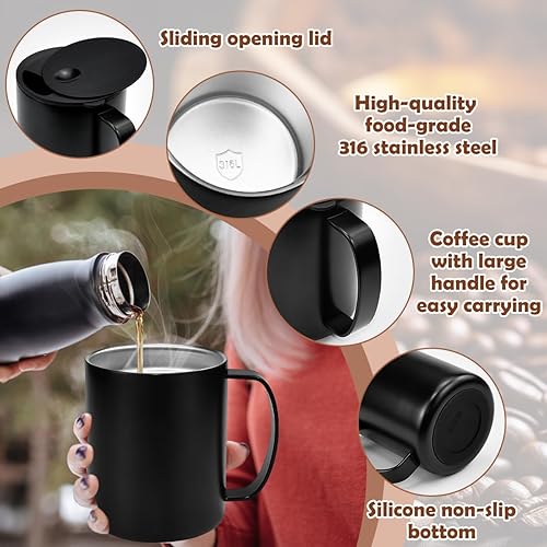 HWSWSH 400ml Tasse à Cafe Isolée en Acier Inoxydable, Tasse à Café Expresso à Double Paroi avec Couvercle Coulissant et Poignée, Mug Cafe Thermique pour Café, Thé, Boissons (Noir)