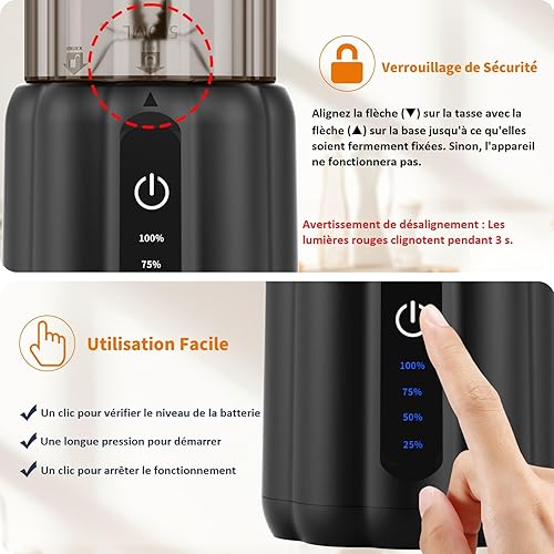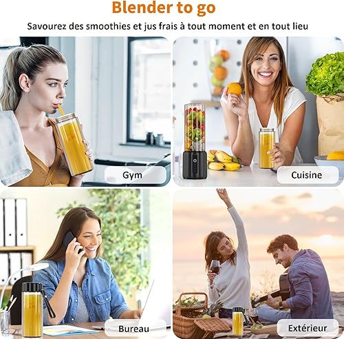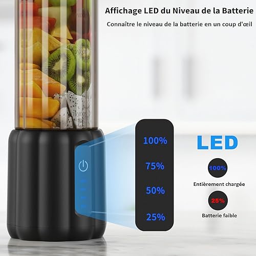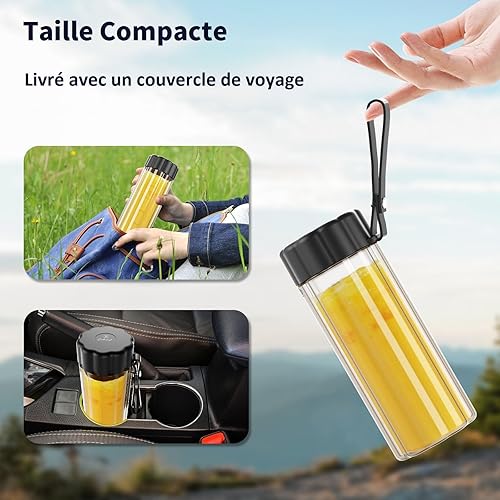 COKUNST Mixeur Portable pour Shakes et Smoothies, 22000 TR/min Puissant Mixeur Smoothie avec 6 Lames, 500 ml Mini Blender avec Couvercle de Voyage pour Cuisine, Salle de Sport, Bureau