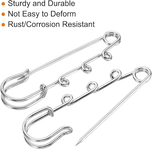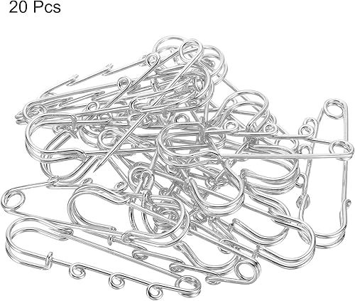 sourcing map Lot de 20 broches à 3 trous en métal de 6,1 cm pour collier de femme, vêtements, robe, pantalon, jupe, taille argentée