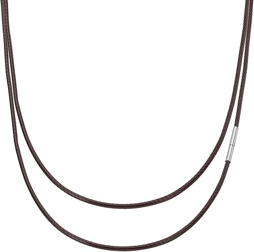PATIKIL 22' Cordon De Collier En Cuir Tressé, 2mm/0.08' Cordon De Collier En Cuir Tressé Imperméable Chaîne En Corde Cirée Avec Fermoir En Acier Femmes DIY Pendentif Cadeau, Marron/Argent