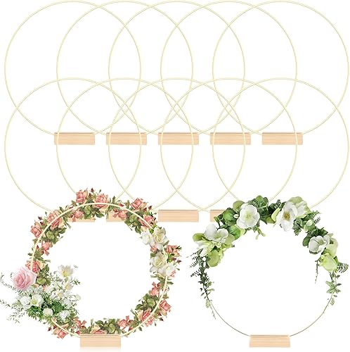 GOMETY: 10 Anneaux Métalliques Dorés Avec Supports En Bois, Pour Artisanat, Pour Couronnes De Mariage Et Décorations Murales, Atmosphère Romantique Pour Les Fêtes (25cm/Or)