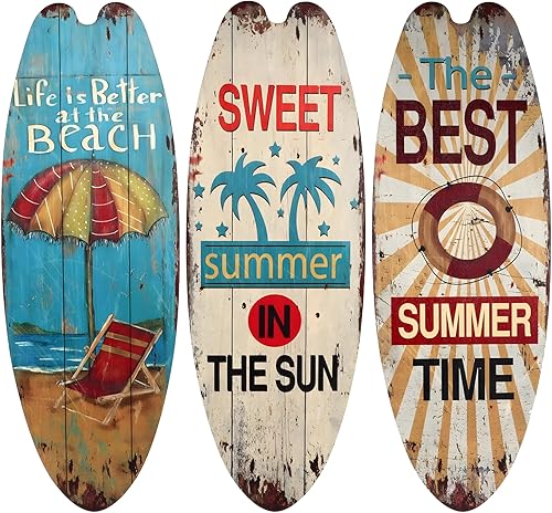 Blleshelfl Lot de 3 planches de surf décoratives en bois