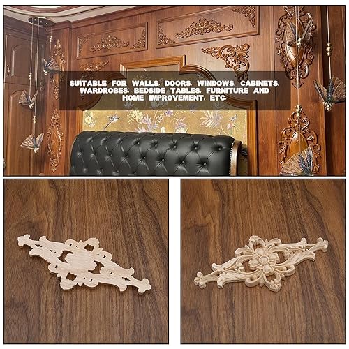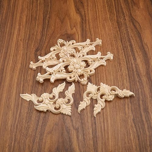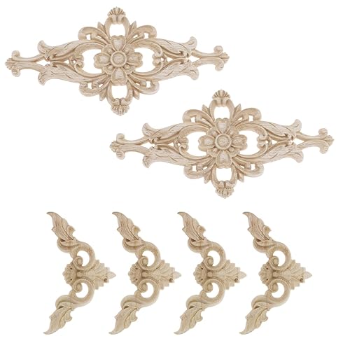 eMagTech Lot de 6 appliques en bois sculpté non peintes, décoration d'angle pour meubles, porte, fenêtre, miroir