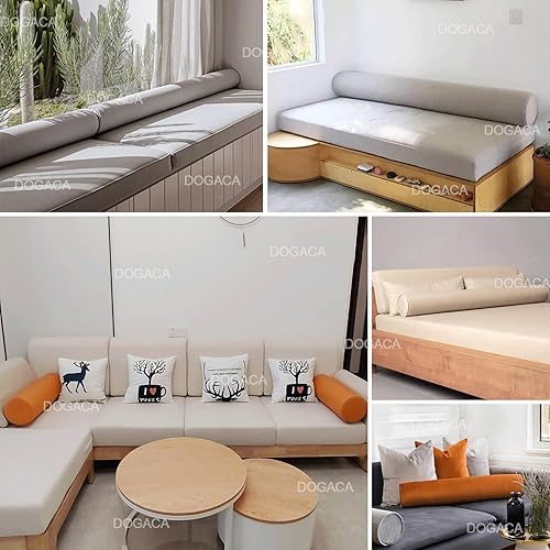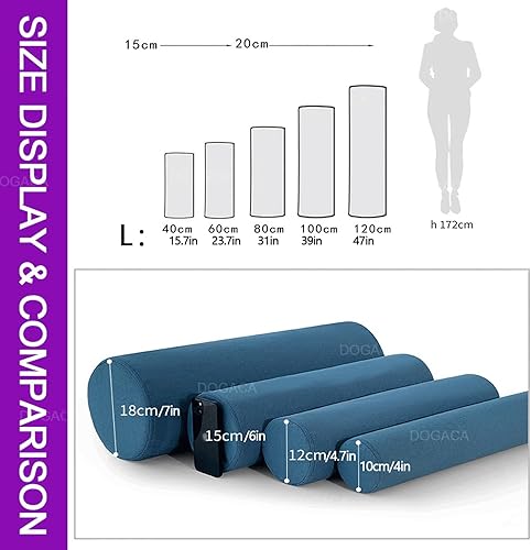 DOGACA Coussin cervical/cervical avec fermeture éclair – Traversin pleine lune/coussin cylindrique rond pour chambre à coucher, salon, canapé, cou, dos, jambes et yoga | Housse amovible lavable |