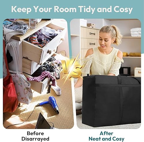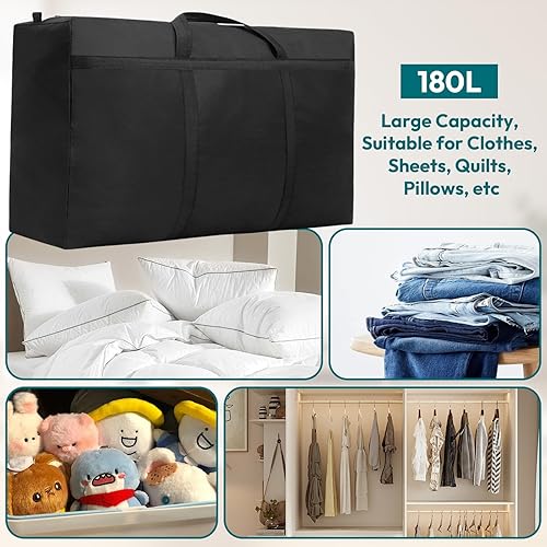 sac demenagement grand format, Lot de 2 sacs de rangement extra larges en Oxford de 180 l, avec double fermeture éclair, sac de rangement étanche pour couettes, couettes, linge de lit