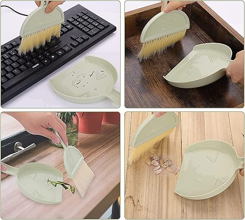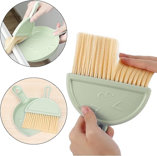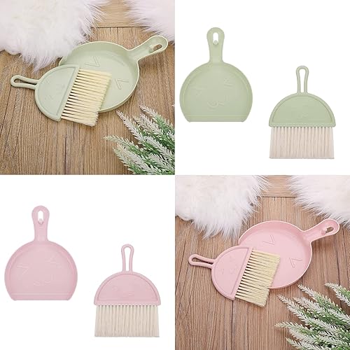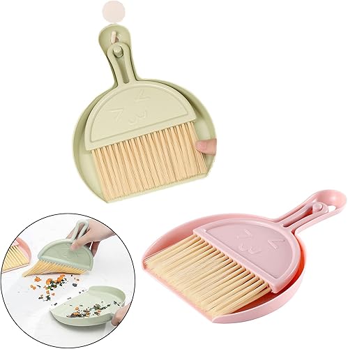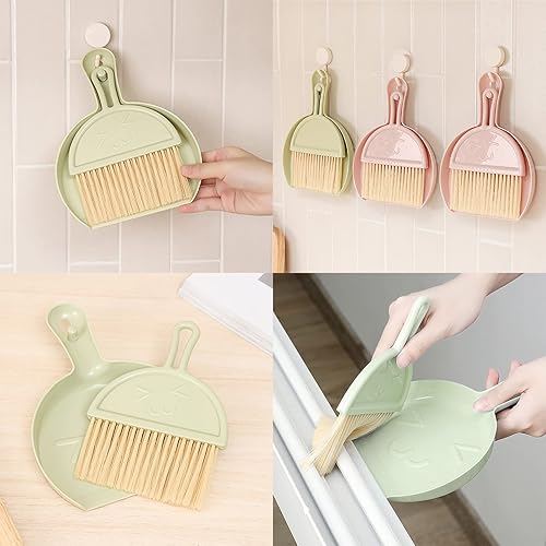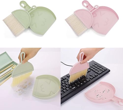 KALUROIL 2 PCS Ensemble mini pelle et balayette, petit balai et pelle à poussière, ensemble de brosse portable pour dessus de table, outils de nettoyage avec poils doux(vert+rose)