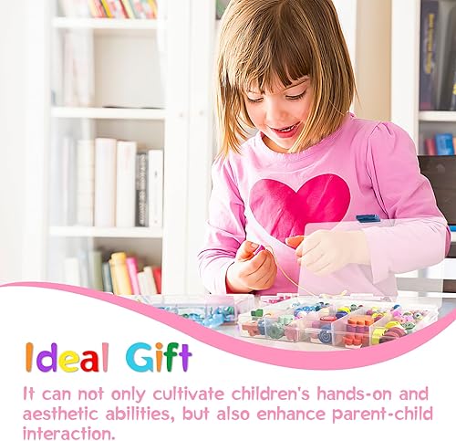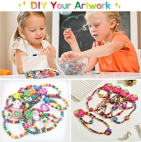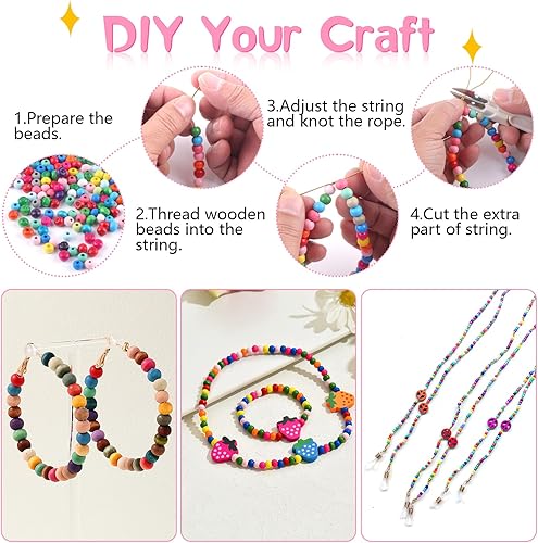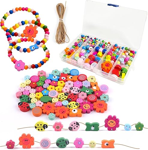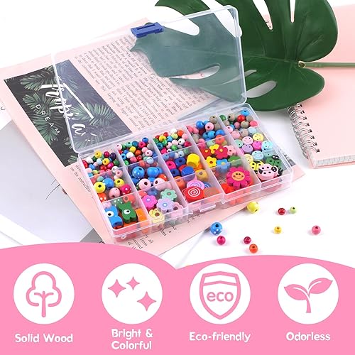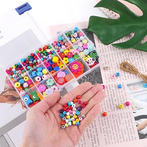 Deepton Lot de 400 perles en bois à enfiler - Pour enfants à partir de 2, 3, 4 ans - Environ 400 perles de bricolage pour bracelets, bijoux, colliers
