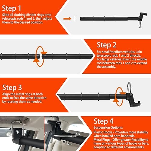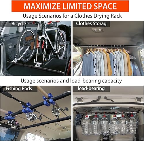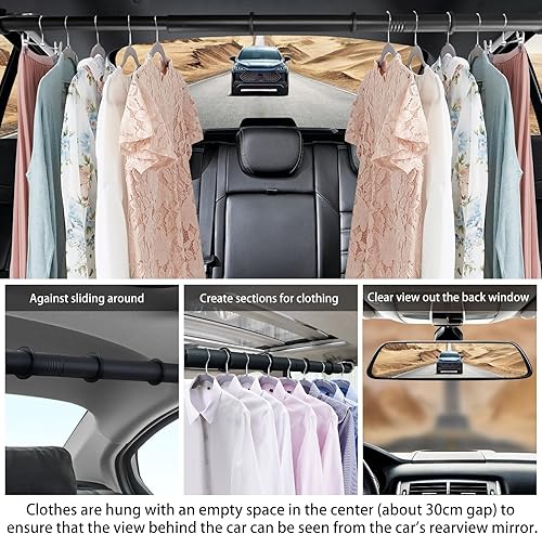 Cintre de voiture ultra-stable longueur réglable 76-160CM, Porte-manteau de voyage avec métal solide et poignées en caoutchouc pour la plupart des voitures SUV RVs Voyage de stockage sans plis