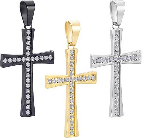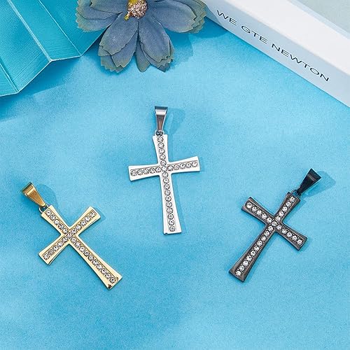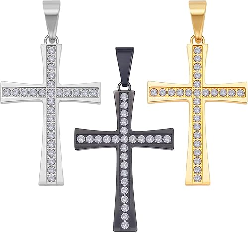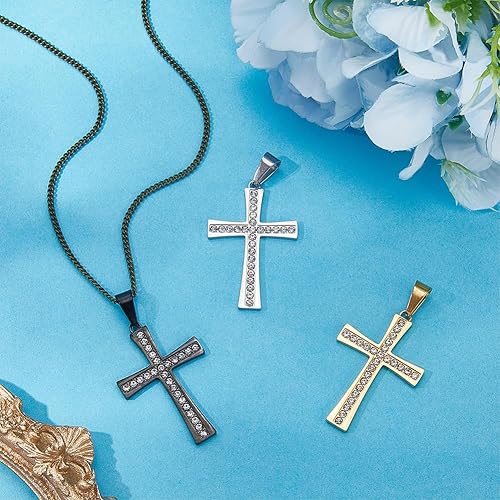 Beebeecraft 1 boîte de 3 Breloques Crucifix en Acier Inoxydable pour Homme 3 Couleurs 304 pendentifs de 26x40mm Noir Argent Or Strass avec Clip pour la Fabrication de Bijoux Bracelets Colliers et