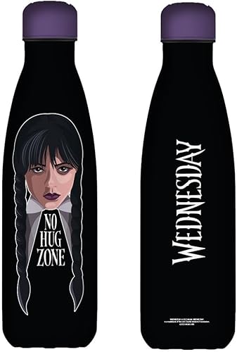 Wednesday Bouteille d'eau en acier inoxydable 500 ml – Bouteille d'eau chaude et froide Mercredi – Bouteille thermos pour voyage ou salle de sport | Design Mercredi (Noir/Violet)