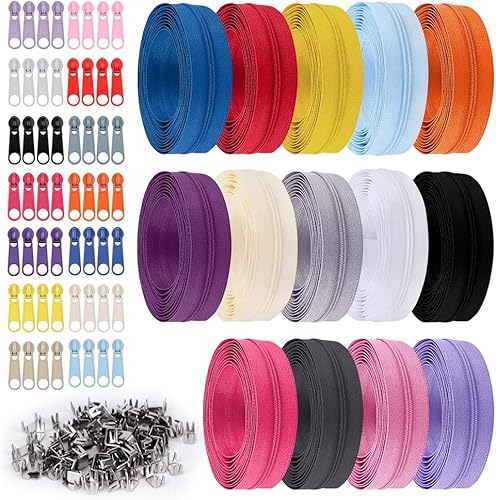 Lot de 14 Fermetures éclair en Nylon, Zip Fermeture Eclair au Metre, Couleurs Fermetures éclair à Coudre Sans Fin avec Curseurs de Fermeture éclair pour Bricolage, Couture, Loisirs Créatifs