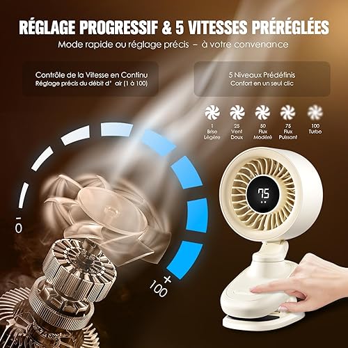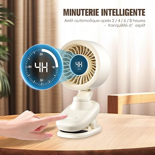 TRILINK Ventilateur à Pince – Mini Ventilateur de Bureau USB avec Batterie Rechargeable, Oscillation, Minuterie, Vitesse Réglable en Continu, Ultra Silencieux – Petit Ventilateur de Table Portable