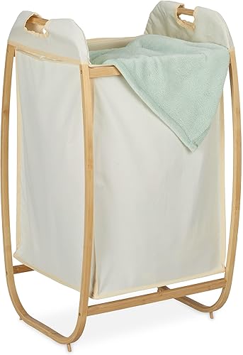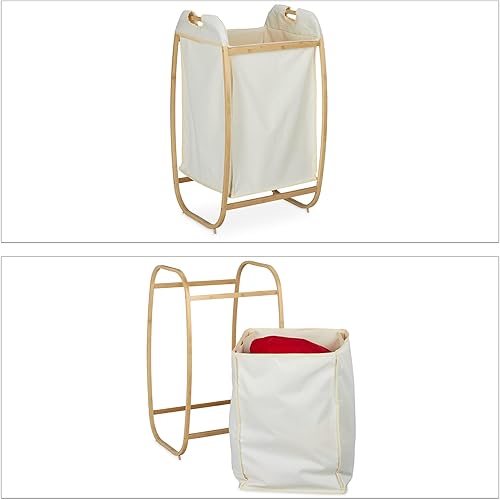 Relaxdays Panier à Linge, Tissu, Cadre en Bambou, sans Couvercle, 70 L, HLP : env. 80 x 44 x 43 cm, Nature et Beige