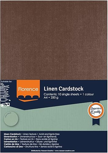Florence Papier Cartonné en Lin Marron 250 g – Papier Scrapbooking A4 – Bear – Papier Cartonné Couleur – Invitations Élégantes, Boîtes-Cadeaux et Projets Artistiques