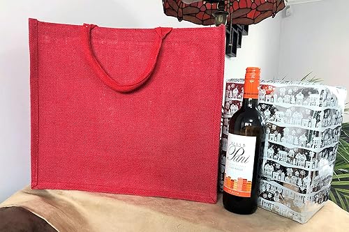 Grand sac de courses en toile de jute rouge de haute qualité pour la Saint-Valentin, Noël