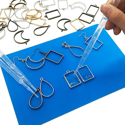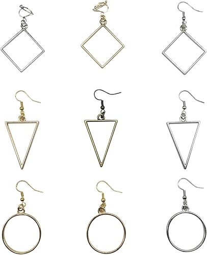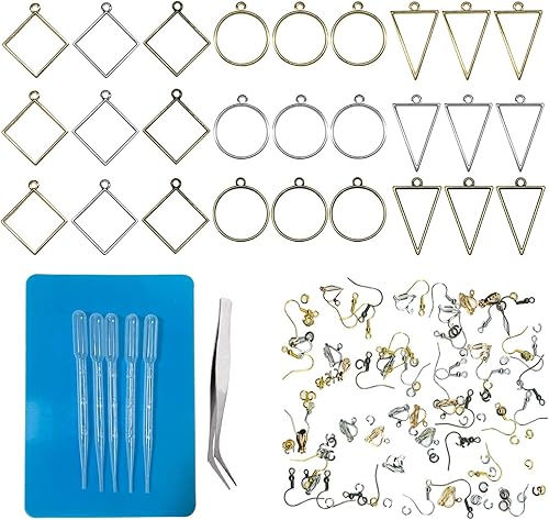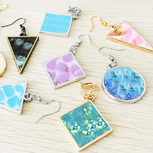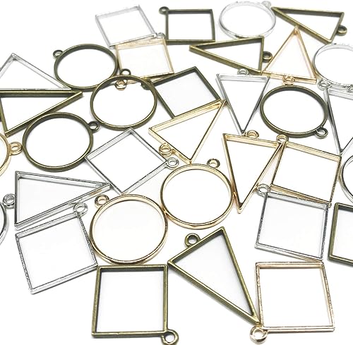 44 PCS Plateaux Pendentif pour Résine, Woohome 36 PCS Pendentifs à Dos Ouvert, Pendentifs de Breloques de Rond Triangle Prismatique, Outils pour Résine, Bracelet Boucles D'oreilles