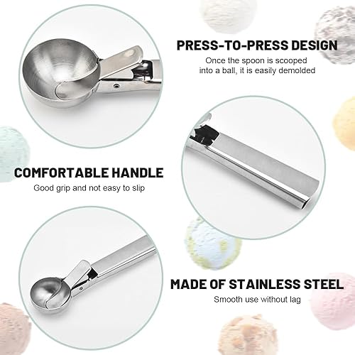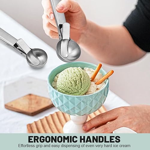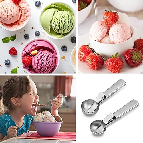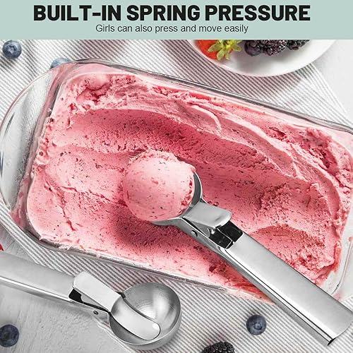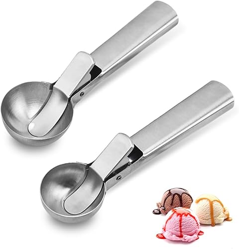 GIDWRIY 2 Pcs Cuillere à Glace en Acier Inoxydable,Boulier Glace Rond Avec Gâchette,Cuillère à Crème Glacée,Ice Cream Scooper,Cookie Dough Scoop,Cuillere Glaces Boule Inox,Cuillères Sphériques Trigger