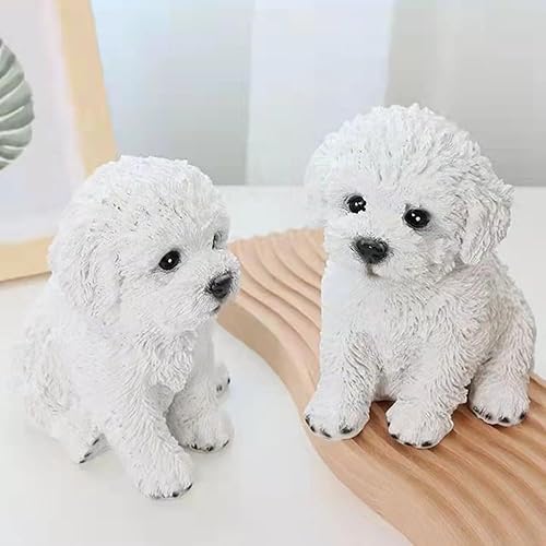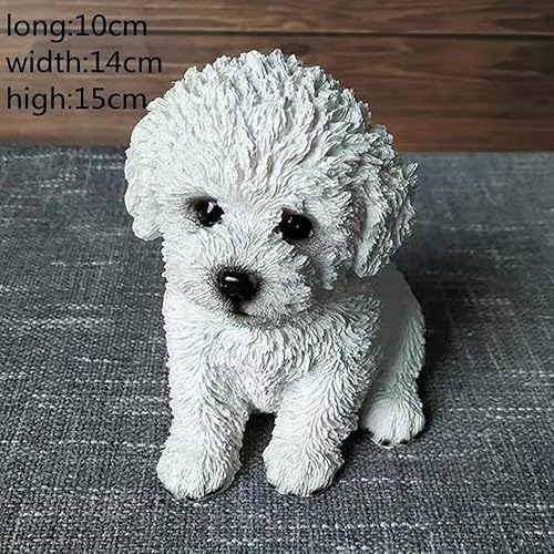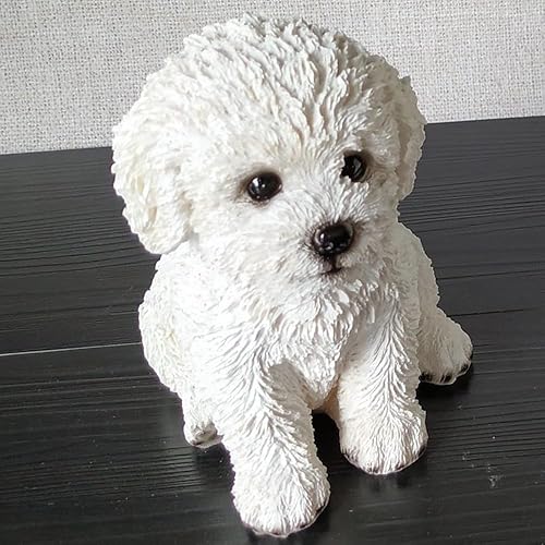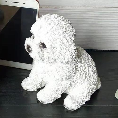 HEARSO Sculpture De Chien Bichon en Résine, Adorable Statue D’Animal Charmant Et Inventif Modèle Sculpture Artisanale Décoration De Bureau, Ornement De Jardin Et De Maison
